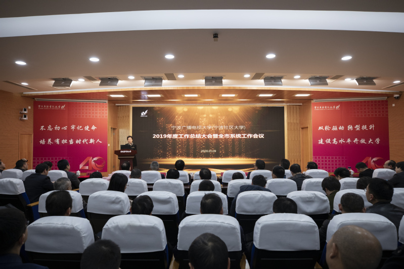 2020年1月9日上午,我校在新综合楼报告厅隆重举行2019年度工作总结大会暨全市系统工作会议。全体校领导、县级电大领导和部分老师、全校教职工欢聚一堂。校长翁雪莲主持大会。大会表彰了2019年度县级电大目标管理考核一二三等奖;校级先进集体、先进工作者;物业先进团队、先进个人、宿管员和贡献奖项目。大会还为三位退休教师举行了荣休仪式。党委副书记、副校长丁振华作2019年度工作总结和2020年工作思路。校长翁雪莲作总结讲话。