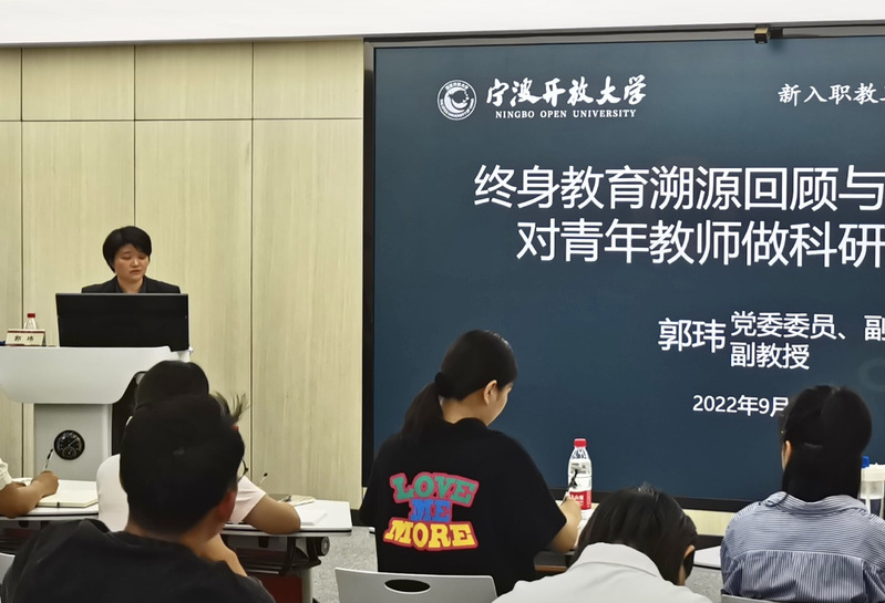 21日下午,党委委员、副校长郭玮分别作《终身教育溯源回顾与宁波实践》《对青年教师做科研的建议》两个主题报告。郭校长围绕终身教育理论溯源、发展回顾、宁波终身教育实践等几方面向青年教师上了一堂理论课。并对青年教师的科研工作提出了建议,指出,青年教师的科研工作应当立足宁波,聚焦终身教育,紧紧围绕建设一流城市开放大学的目标定位,为学校发展贡献力量。