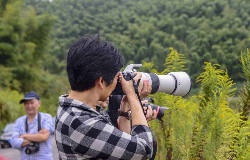 秋日的葛岙水库,山如黛水似玉,空濛壮美。此情此景,极大地激发了学员们的拍摄灵感。大家按捺不住心中的激动,立时四散,找寻拍摄的最佳点。学员们举起手中的相机,屏气凝神,在“咔咔”的快门声中捕捉着一个个美丽的画面,用镜头记录新时代建设的成果。他们时而欢呼发现的绝美视角,时而惊叹乡村的巨大变化,还不忘交流色彩、光线、角度等摄影的技巧。在拍摄水库美景的同时,也不忘拍摄身边的“风景”。水库用美景吸引学员,而学员的到来也为水库增添了一道靓丽的风景线。