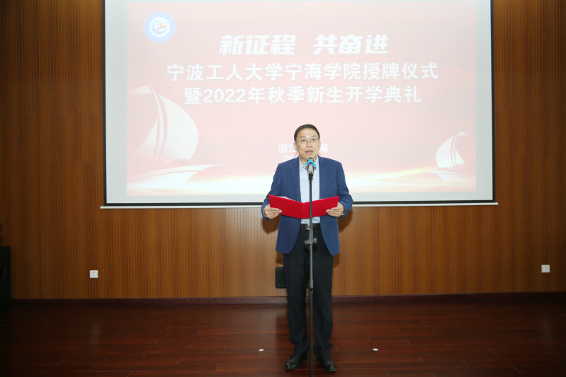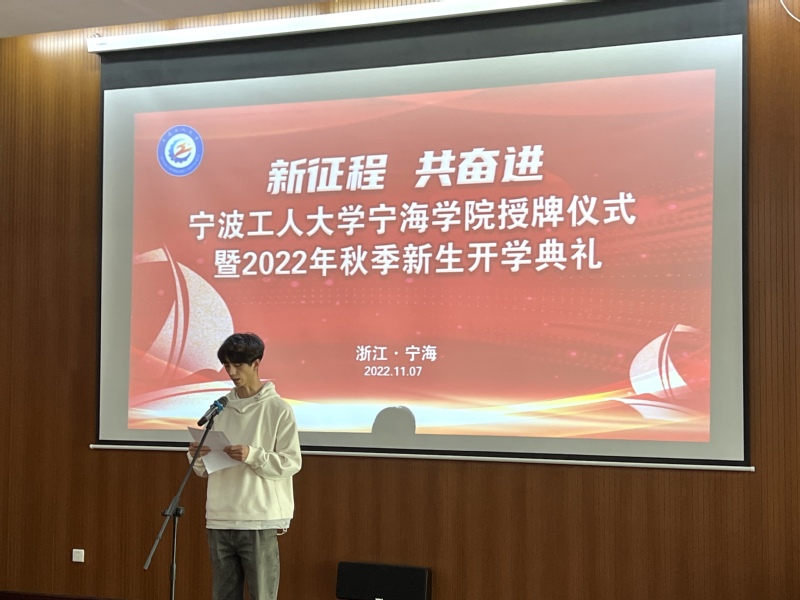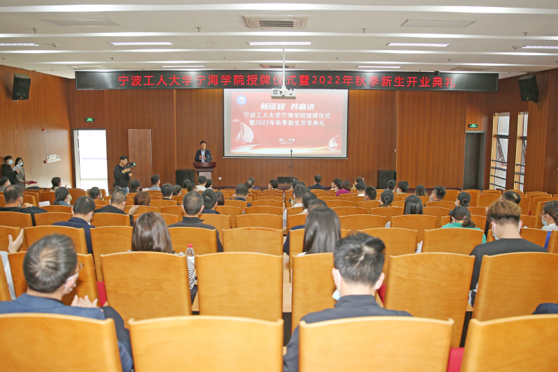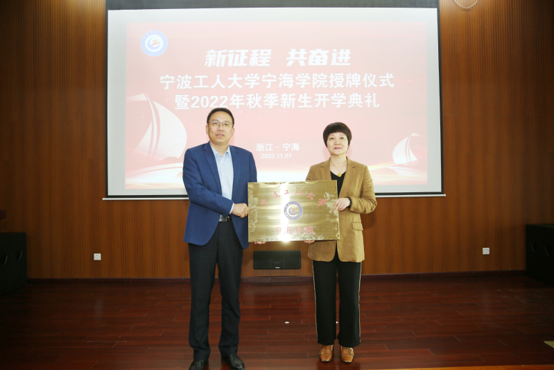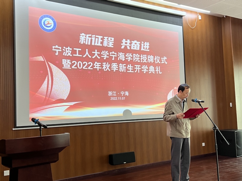 11月7日,宁波工人大学宁海学院授牌仪式暨2022年秋季宁海新生开学典礼在宁海县总工会举行。