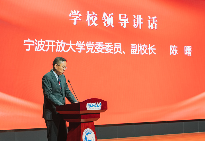 仪式最后,党委委员、副校长陈曙代表学校作了讲话。他向大家简要介绍了学校的办学宗旨和发展历程,回顾了近年来学校事业发展的特色路径。就如何学习这个问题,陈曙副校长要求全体新生养成终身学习的习惯、掌握正确的学习方法并坚持学以致用。