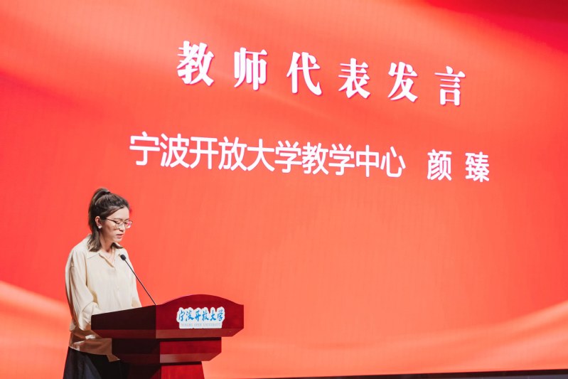 教学中心颜臻代表全校教师发言。她以“向阳而生 追光不止”为题,从“开放”谈起,跟新生分享了开放大学、开放学习、开放做人的思考。希望全体开放教育新生以开放的心态拥抱学习、快乐学习。
