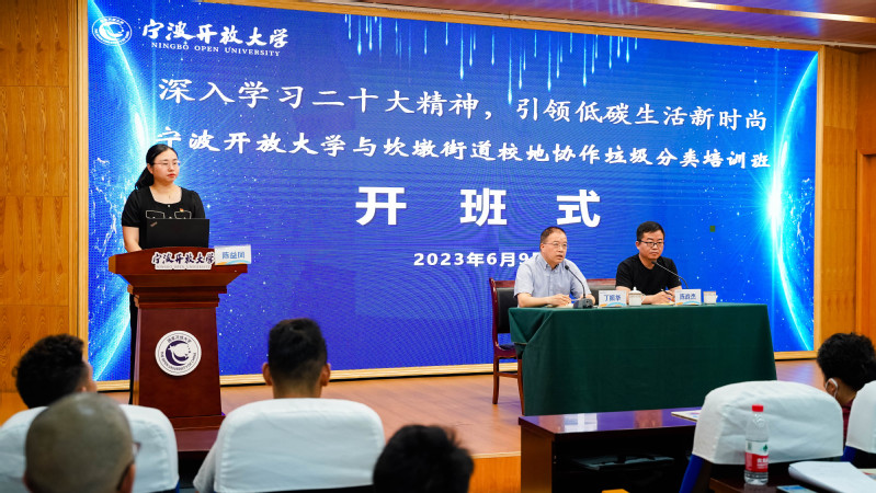 6月9日,我校与慈溪市坎墩街道校地协作垃圾分类培训班正式开班,校党委副书记、副校长丁振华,慈溪市坎墩街道办事处副主任陈战杰出席开班式,由宁波垃圾分类学院执行副院长陈益凤主持。举办这次培训,是学校全面贯彻落实党的二十大精神,深入贯彻习近平生态文明思想,开展“联镇街入村社”活动,为包联的坎墩街道、村社开展解题破难,助力乡村振兴的一次实际行动。