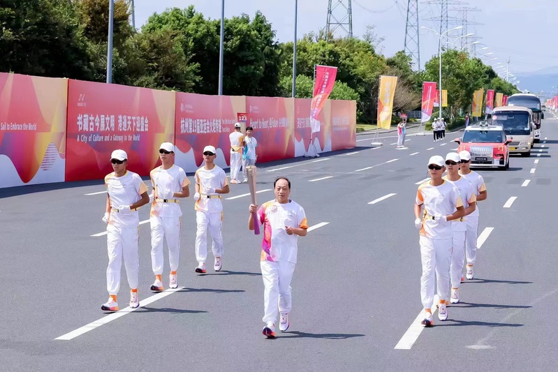 伴随着高昂激情的杭州亚运会火炬传递主题曲《燃》和杭州亚运会主题曲《同爱同在》,我校杰出校友竺士杰(特聘教授;2003春市校行政管理专科,2010秋行政管理本科,2018春机械设计制造及其自动化本科)、万亚勇(特聘教授;2019春市校机电专科,2022春市校计算机本科)、周英芳(2016秋市校机械设计制造本科)、邬明忠(2022春市校行政管理专科)和泮玉娣(2002春宁海行政管理专科)等5位开放教育在籍学生和校友分别担任第170棒(最后一棒)、149棒、148棒、123棒和109棒火炬手。据悉,我校张霁明、范丽锋和潘明杰等三位特聘教授也担任了此次亚运火炬手。