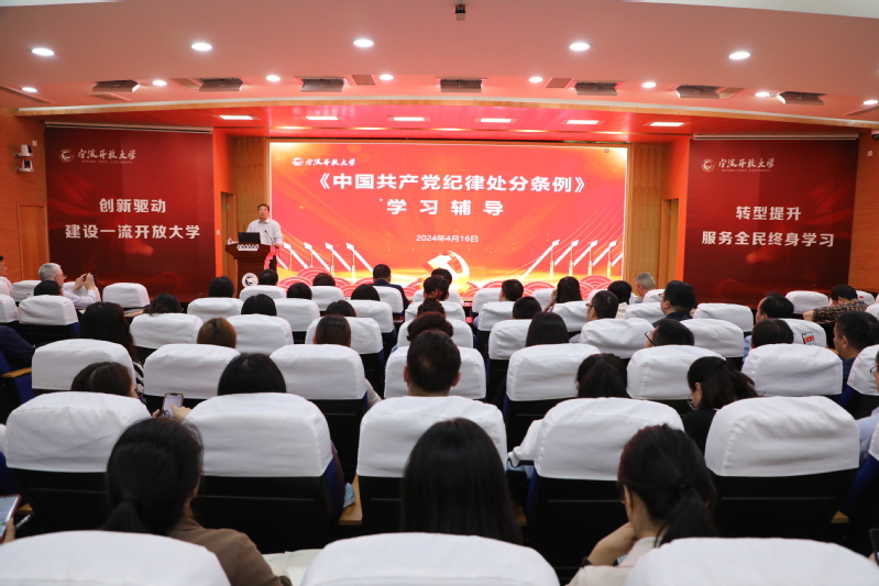 4月16日下午,广发(中国)guangfa·官方网页版党委委员、纪委书记陈武为学校全体党员作题为“新标尺 新底线——认真学习《中国共产党纪律处分条例》”的学习辅导。辅导会由党委书记黎群主持。