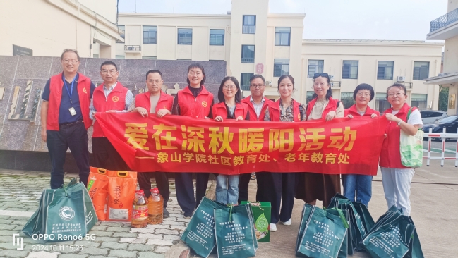 九九登高望,岁岁共天长。为弘扬中华民族尊老、敬老、爱老的传统美德,在重阳节来临之际,丹东街道社区老年学校开展“爱在深秋,情暖重阳”关爱慰问老人活动。老年教育处、志愿者共计32人参加。