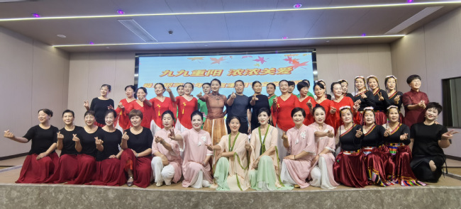 重阳节当天,舜星银苑老年公寓里,传出阵阵欢声笑语。在兰江街道社区教育中心组织下,老人们系着围裙,兴高采烈地学做包子。待包子出笼,舜星老年学堂和兰江社区教育中心各学堂的文艺队也已盛妆待场。老人们就像过年一样,整整齐齐地坐在礼堂里,工作人员把热腾腾的包子送到老人们手中。在赵院长热情洋溢的祝福声中,主题为“九九重阳、浓浓关爱”的文艺活动开始了。《春暖花开》《梅花赋》《我和我的祖国》……,演员们绚丽的衣裙,曼妙的舞姿,灿烂的笑容,和着或磅礴或深情的音乐,舞出了盛世太平,舞出了佳节喜庆。当耳熟能详的越剧《九斤姑娘》一上场,老人们更兴奋了。顾不得咀嚼手里的包子,跟着节奏头一晃一晃地轻轻唱了起来。