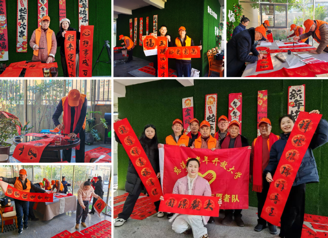 祥龙辞岁留嘉瑞,金蟒迎春启新程。12月29日上午,在元旦佳节来临之际,慈溪市老年开放大学“华龄乐为”书法组志愿者带着对新年的美好期许,走进大观璟园小区,开展了一场别开生面的“春联送福,墨香传情”文化活动,为社区居民提前送上了一份年味浓浓的文化盛宴。