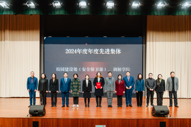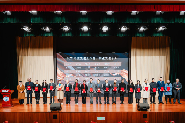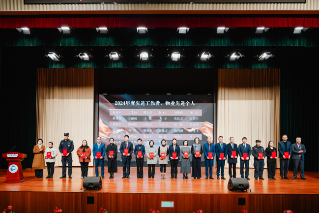 大会还表彰了先进个人和先进集体。倪海鸥等33位教师获校级先进工作者,汪其唤等4位物业员工获物业先进个人。校园建设处(安全保卫部)调解学院、教学中心 思想政治理论课教学部、老年教育学院、办公室(宣传部、发展规划处)荣获2024年度校级先进集体奖,餐饮服务团队荣获2024年度物业先进团队。