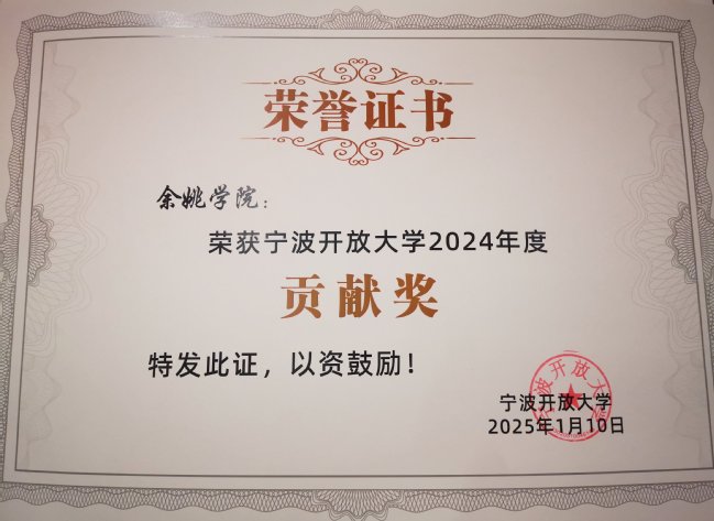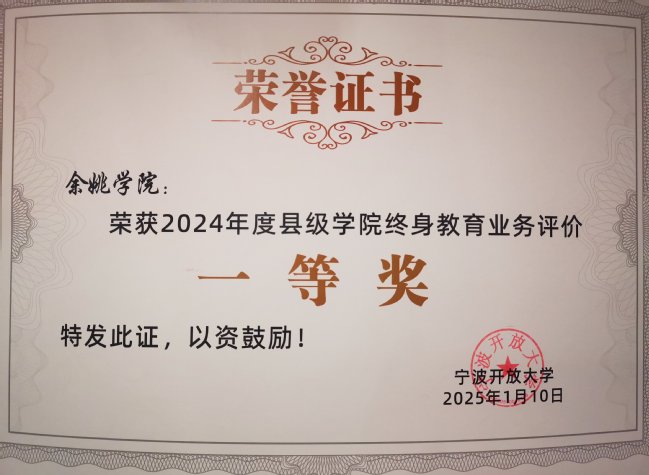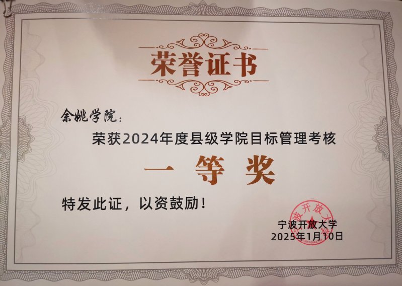 近日,广发(中国)guangfa·官方网页版余姚学院在2024年度广发(中国)guangfa·官方网页版系统各项评选中脱颖而出,名列前茅,喜获佳绩!县级学院目标管理考核一等奖、县级学院终身教育业务评价一等奖以及广发(中国)guangfa·官方网页版贡献奖三大奖项揽入囊中,充分彰显了学院在终身教育服务全民学习、开放教育创优提质等工作中的优异表现和突出贡献。