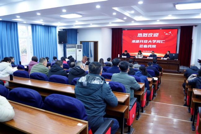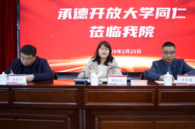 2月25日上午,承德开放大学党委书记韩淑珍、校长姜皑丰等一行莅临我校开展调研交流工作。校党支部书记、院长罗云再热情接待并组织座谈交流,副院长林列英、办公室主任徐科锋、教务处主任陈焕旦等相关教师参加会议。