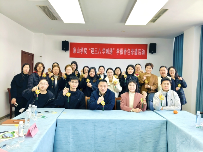 会议结束后,为迎接“三八”国际妇女节,象山非遗刺绣传承人徐嫦月受邀为社区工作者进行刺绣技艺展示与传授。徐嫦月现场示范刺绣针法与技巧,并指导与会者制作香包。在她的指导下,与会者认真投入刺绣创作,现场气氛热烈而温馨。经过努力,一个个精美的香包诞生,它们不仅承载着传统文化的精髓,更寄托了制作者对美好生活的向往。