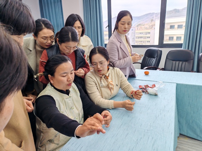 活动现场笑语盈盈,平日执笔的手灵巧翻飞。当一个个饱满圆润的柿子香包在掌心成型,艾草香伴着此起彼伏的惊叹声在室内流转,有人将香包系于挎包,有人轻嗅着怀念儿时母亲缝制的香囊,更多人举起手机定格这份独特的节日记忆。活动尾声,女教师们佩戴亲手制作的柿子香包合影留念,那一抹抹跳跃的柿红色,恰似她们在教育园地中绽放的灼灼芳华。