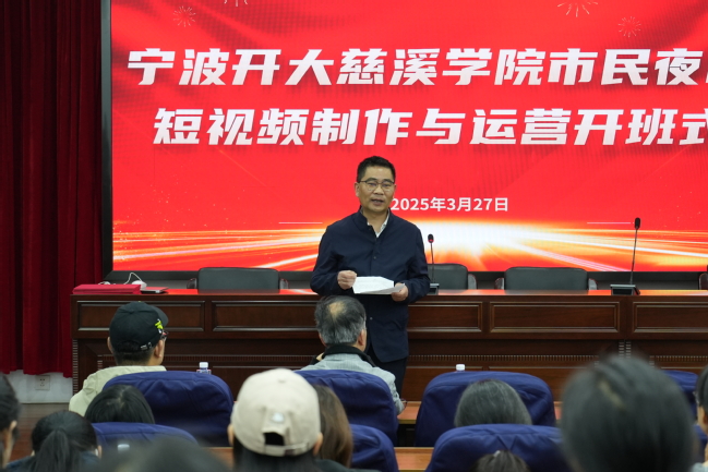 在开班仪式上,慈溪市社区学院罗云再院长表示,本次培训是推动全民终身学习、深度融入数字时代发展的重要举措。短视频作为数字经济时代的核心赛道,不仅重塑了信息传播格局,更为城市文化传播开辟了崭新窗口。罗院长对学员们提出三点期望:其一、鼓励学员牢牢把握学习机遇,将课堂所学应用于实际创作,做到知行合一、学以致用;其二、倡导以课程为纽带,搭建起学员之间、学员与讲师之间互动交流的桥梁,共同构建积极活跃的学习生态圈;其三、坚持终身学习理念,在数字技术迭代更新的浪潮中,不断提升自身专业素养与综合能力。