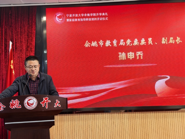 余姚市教育局孙申乔副局长指出,此次开设的家庭教育指导师资班是落实《家庭教育促进法》的创新实践,45名德育教师将作为余姚首批“学历+家庭教育”双师型培养对象,通过专业系统学习,成为余姚校家社协同育人新生态的“生力军”。他要求师资班学员带着责任学,做学生成长的引路人;带着问题学,做家校协同的解题人;带着情怀学,做家庭教育的“大先生”。他希望全体新生树立终身学习理念,掌握高效学习方法,注重理论转化实践,发挥“头雁效应”,为社会创造更大价值;要求余姚学院坚持创优提质、坚持以生为本、坚持主动作为,以更强担当服务地方发展,争当“教育强国”和“学习型社会”建设的优秀答卷人。