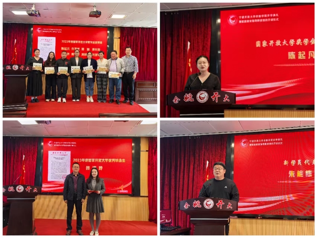 仪式表彰了国家开放大学优秀毕业生及奖学金获得者。奖学金获得者小学教师陈起凡作为获奖代表发言,分享其将汉语言文学专业所学融入语文教学的实践:“教育的本质是用一盏灯点亮另一盏灯”。丈亭镇中德育副书记朱能栋作为家庭教育指导师资班的新生代表,表达了通过公共事业管理专业学习提升家庭教育指导能力的决心,同时也表示将所学所悟转化为实际行动,用专业知识点亮更多家庭的希望,用爱心与耐心陪伴更多孩子的成长。