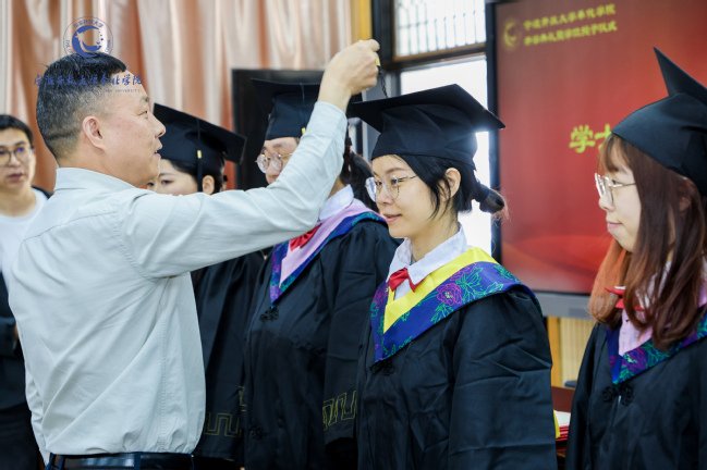 随后,对优秀毕业生和学位获得者进行了隆重表彰。杨诚训为学位获得者拨穗正冠,并颁发了学位证书。据悉,本科学士学位获取率不仅是国家开放大学评估分部办学质量的关键指标,更是衡量学校办学能力和管理水平的重要标志。近年来,奉化学院高度重视学位教学管理工作,通过多形式宣传、多举措辅导等途径,聚力保障学位获取。2024秋奉化学院共有8位本科学员获得国家开放大学学士学位,人数创历年新高,充分彰显学院在教育教学提升方面取得的显著成效。