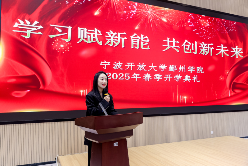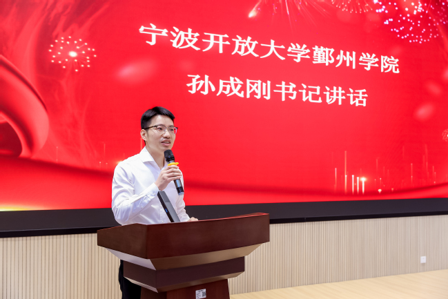 然后,孙成刚书记致辞欢迎新生的到来,孙书记热情洋溢地阐述了开放大学“敬学广惠、有教无类”的办学初心 ,并坚定地告诉同学们“开放教育不是“退而求其次”,而是“进则搏击长空”的广阔舞台”,为新生以后的学习指明了方向 。授书环节,仪式感满满地见证了此届新生正式入学我院的神圣时刻。新生代表邵凯峰同学发言表达了自己对新知识、新技能以及学位的向往。他坚信自己和同学们在两年半的学习时间里,定能在鄞州学院找到属于自己的星辰大海!