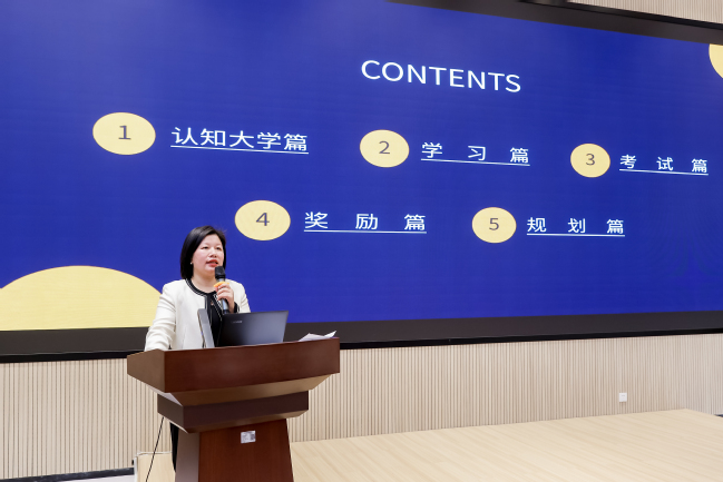 最后教务处主任朱晓红老师简明扼要地对新生进行相关学习要点宣讲。