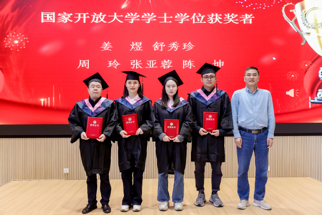 会上,鄞州学院对2024学年涌现出来的一批品学兼优、表现突出的优秀学员进行了表彰。他们以坚定的信念、刻苦的精神和卓越的成绩,展现了鄞州学院学子的风采。汤涛院长、孙成刚书记、俞剑辉副院长分别为各类奖项获得者颁奖。优秀毕业生代表张亚蓉同学发言。张亚蓉和同学们交流了自己通过在鄞州学院两年半的学习,克服学工矛盾,坚持不懈,最后不仅取得了本科学历,还获得了国家开放大学学士学位。