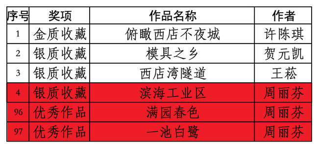 近日,从全省“魅力光影 蝶变星城”“智造滨海 福地龙山”摄影大赛传来喜讯:慈溪市老年开放大学摄影社团学员周丽芬、洪迟在赛事中表现优异,周丽芬的三组摄影作品荣获银奖和优秀奖,洪迟的两幅作品亦摘得优秀奖,展现了老年学员在摄影艺术领域的深厚功底与创新活力。