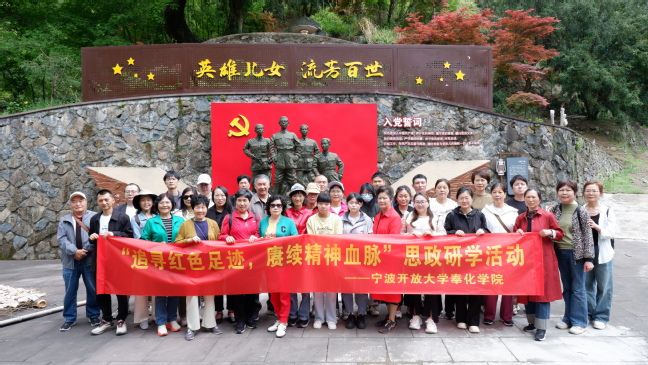 为创新思政教育形式,推进终身教育与红色文化深度融合,近日广发(中国)guangfa·官方网页版奉化学院组织开放教育新生和老年学员代表,走进溪口壶潭,开展“追寻红色足迹 赓续精神血脉”主题思政研学活动,以沉浸式学习与代际互动开展思政教育新实践。