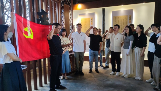 参观结束后,全体党员重温入党誓词。在罗云再书记的带领下,大家整齐列队、高举右拳,庄严宣誓:“我志愿加入中国共产党…… 随时准备为党和人民牺牲一切,永不叛党!”铿锵有力的誓言在古祠内久久回荡,既承载着党员们对党的赤诚信仰,更让先辈传续的廉政精神与入党初心在这一刻深度交融。