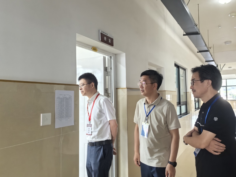 蒋士勇书记一行首先深入考场一线,仔细察看了考场整体布置、试卷安全保管等关键环节,详细询问了考试组织流程的执行细节,并对考场秩序、监考人员履职情况进行了重点观察。巡考过程中,领导们对考场环境的有序与规范表示认可。