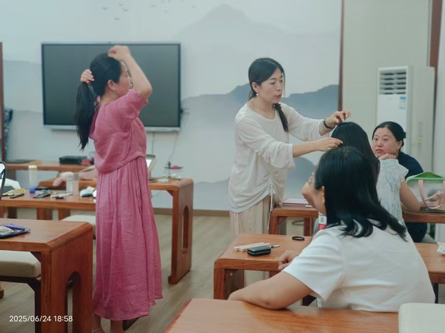 在《AI应用》课堂上,学员们不仅了解了人工智能的基本原理,还动手体验了AI工具在日常生活和工作中的应用,提升了数字素养;《短视频制作》课程则帮助市民掌握视频拍摄、剪辑与传播技巧,不少学员的作品已在社交平台上获得点赞无数;《美妆技巧》课程由专业化妆师授课,从基础护肤到妆容设计,让学员们收获满满自信;而《八段锦养生》课程更是受到中青年朋友的热烈欢迎,大家在轻松愉悦的氛围中强身健体、修身养性。