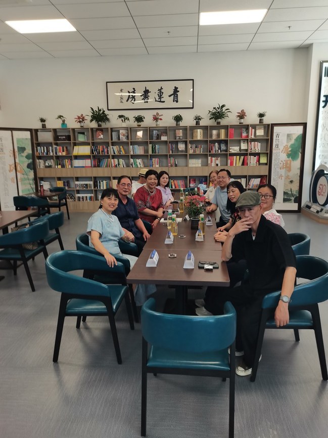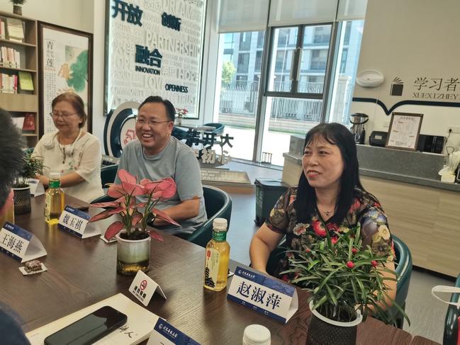 8月7日下午,书香氤氲的开大校园迎来了一场诗意盎然的雅集。这是“走进开大、认识开大”系列活动第四场。《浙江诗人》主编天界、编辑周笑以及本地诗人孙武军、王海燕、魏玉祺、盛醉墨、王亚萍、王立军、觅真等来访我校。我校副教授,海曙区作家协会主席赵淑萍,海曙区作家协会秘书长蒋静陪同。诗人一行参观了终身学习大楼,随后在充满人文气息的学习者驿站举行了别开生面的“海曙诗人作品品鉴会”。