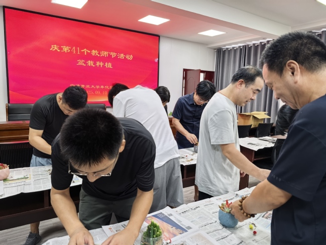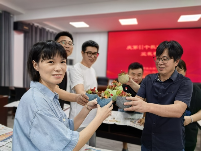 小盆栽种植环节,老师们更是发挥自己的灵感,搭配、栽种、装饰,亲手打造属于自己的“办公桌微景观”,小小绿植,寄托着对教育事业的美好期许。