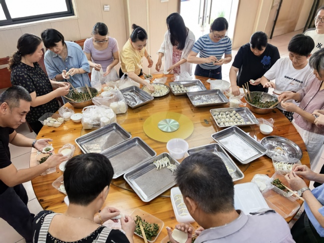活动现场欢声笑语,暖意融融。包饺子环节,老师们纷纷化身“厨艺能手”,拿皮、包馅、摆盘一气呵成,形态各异的饺子里包裹着彼此的祝福与情谊,承载着对生活与工作的热爱。
