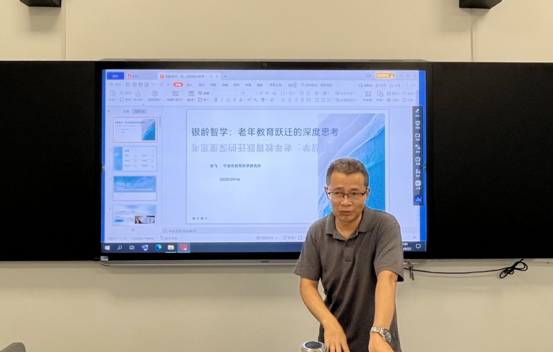杨飞主任围绕教育场景再造、一老一小融合、城乡差距改善、人工智能赋能等方面深度思考了老年教育未来发展进路。他提出,教育场景再造需突破传统教室边界,构建“线上+线下”融合的学习生态,通过智慧教室、社区学习中心等多元空间,让老年人随时随地参与学习;“一老一小”融合方面是宁波市值得探索的发展模式,代际共学模式如开设“隔代教育”“数字反哺”课程,能够促进两代人经验与技术的双向传递;人工智能赋能则聚焦个性化服务,利用AI分析学习数据,定制养生、艺术等特色课程,开发智能助教辅助课堂教学,以科技提升老年教育的精准性与可及性。