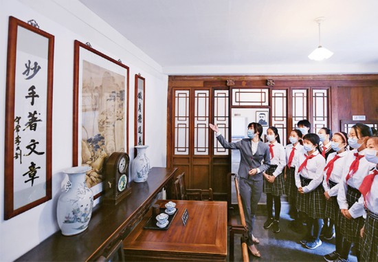 李大钊同志是中国共产主义运动的先驱,伟大的马克思主义者,杰出的无产阶级革命家,中国共产党的主要创始人之一。1920年春至1924年1月,李大钊和妻儿曾在北京市西城区文华胡同24号生活了近4年。中国共产党百年华诞之际,李大钊故居经过改造提升后重新对外开放。图为讲解员为前来参观的学生做介绍。 新华社记者 张晨霖/摄
